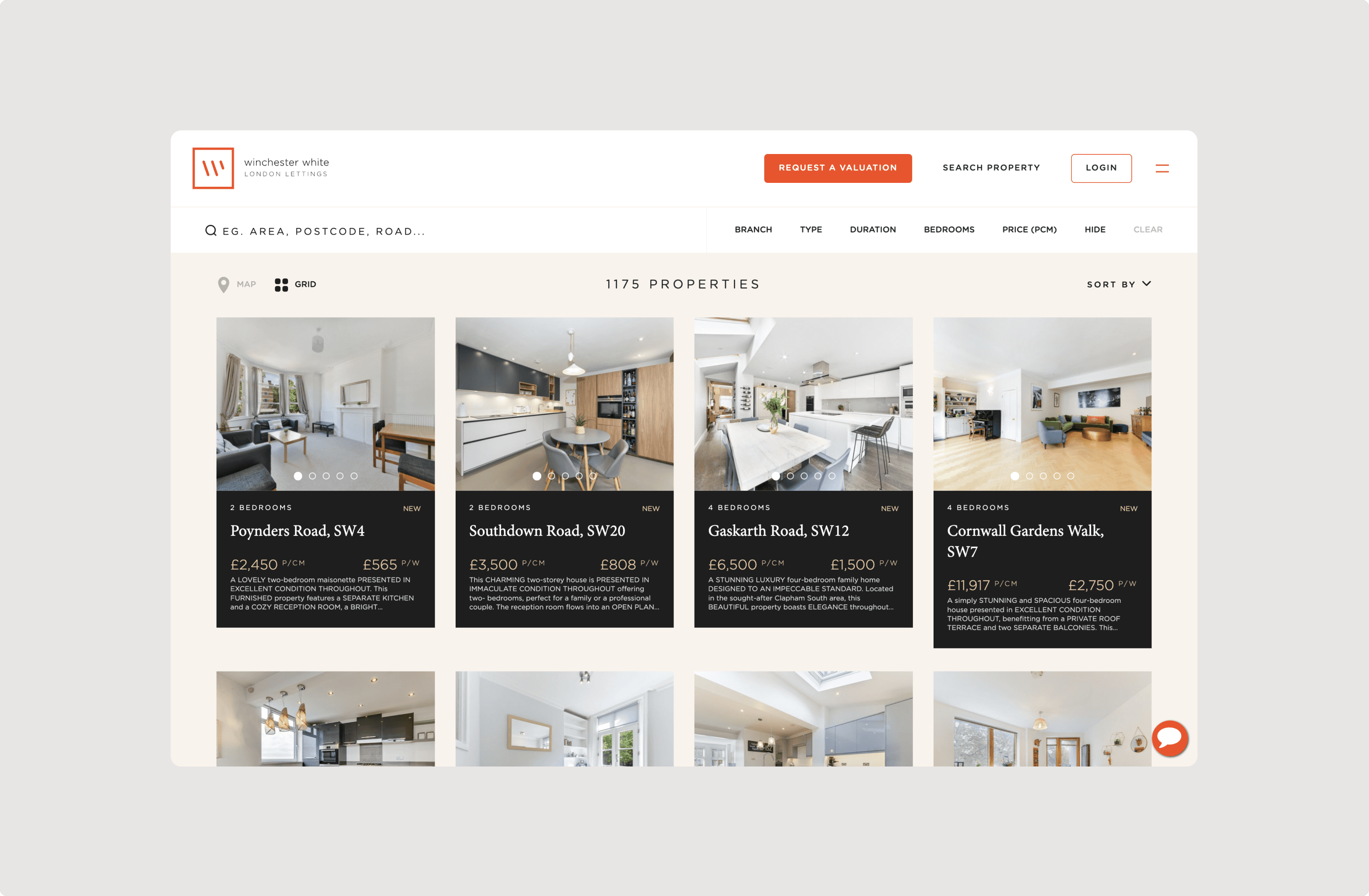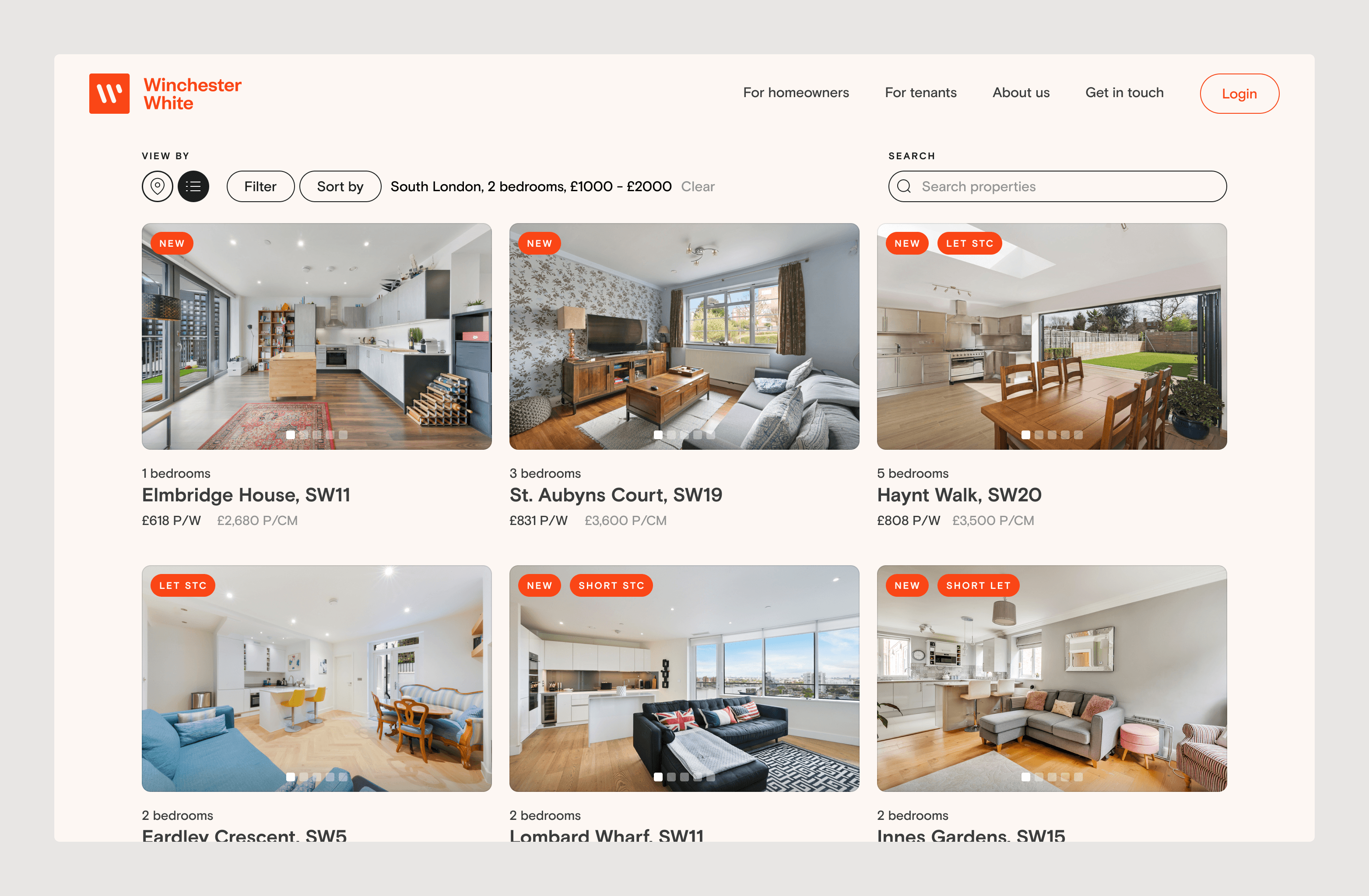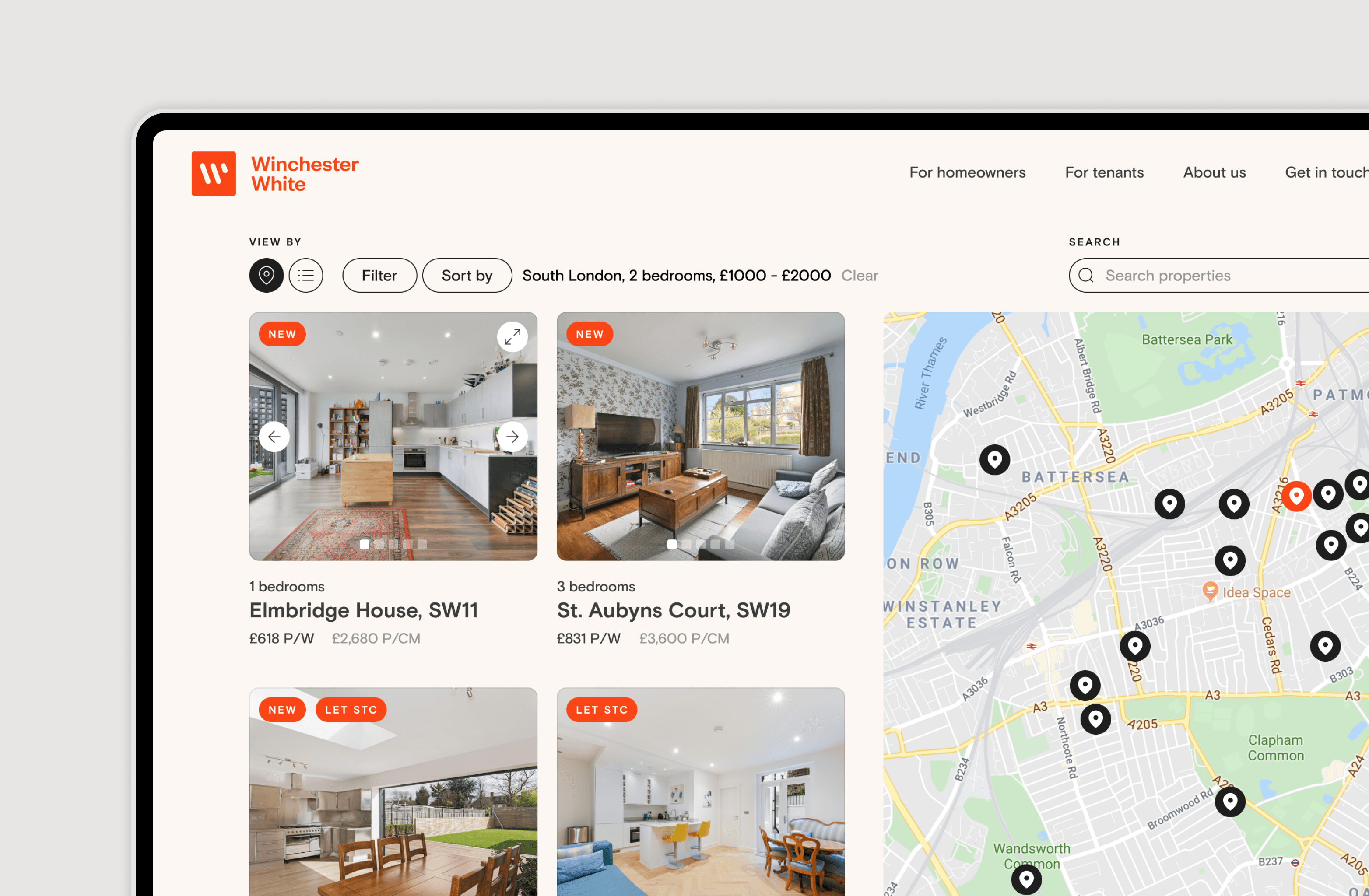 Winchester White, a London estate agent, was working on a new brand and wanted their digital experience to match. The site was coming together nicely, however, customers were struggling to browse properties on their site. Winchester White wanted to create an experience that kept users engaged and made property hunting a pleasure—not a pain.