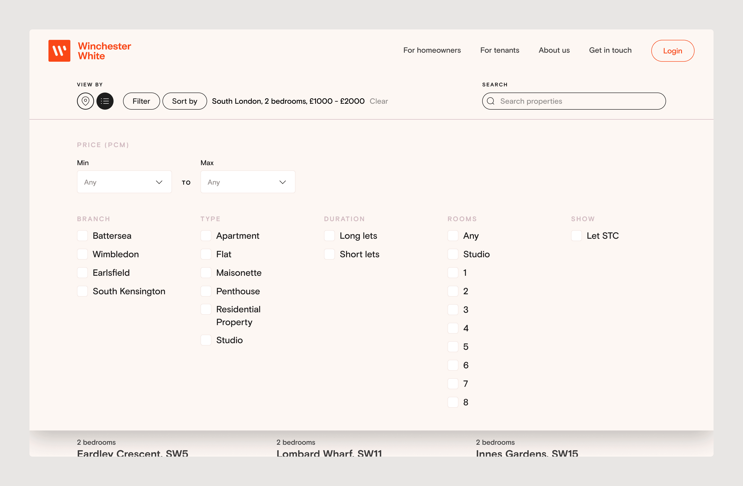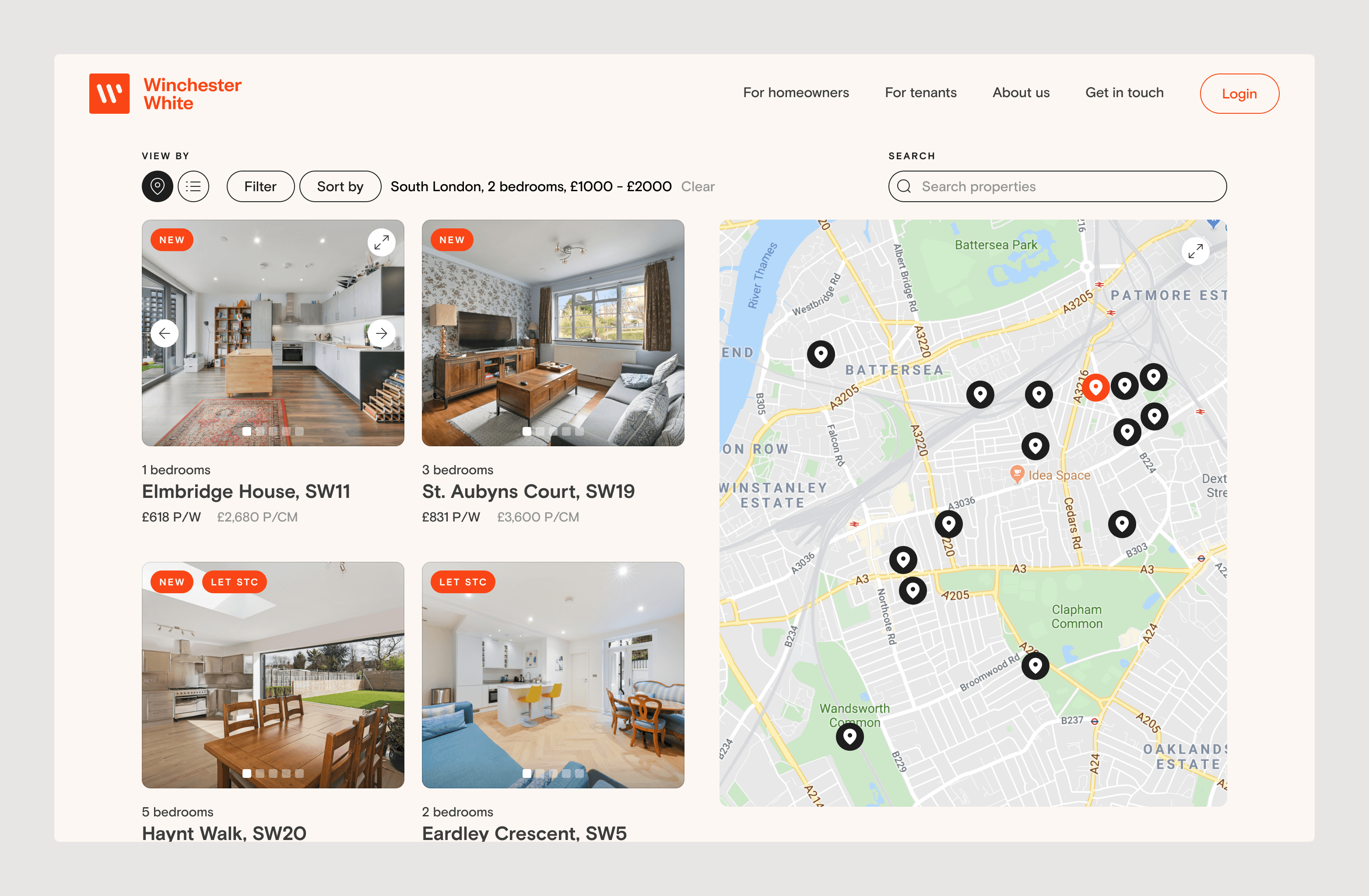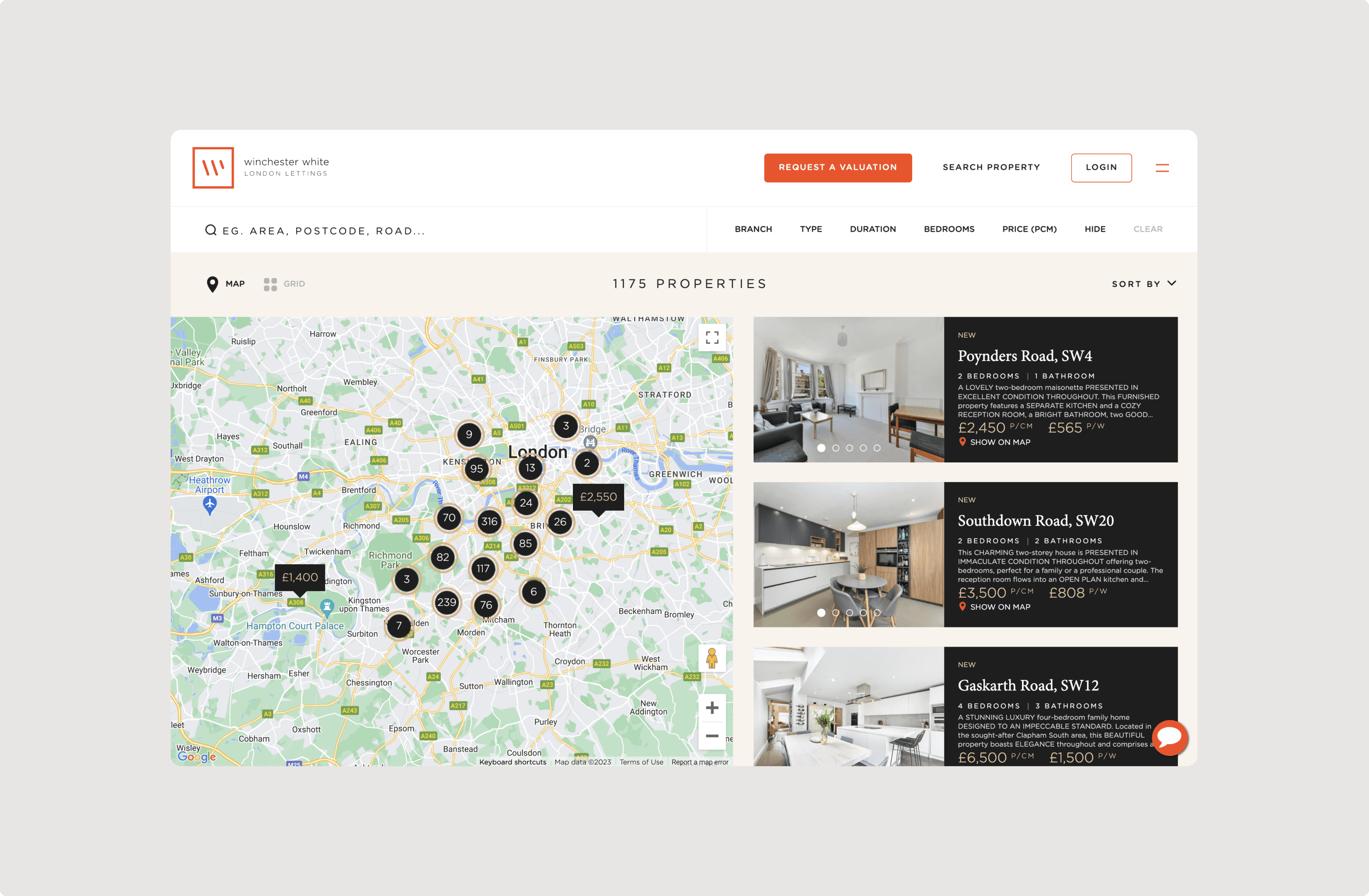 Winchester White, a London estate agent, was working on a new brand and wanted their digital experience to match. The site was coming together nicely, however, customers were struggling to browse properties on their site. Winchester White wanted to create an experience that kept users engaged and made property hunting a pleasure—not a pain.