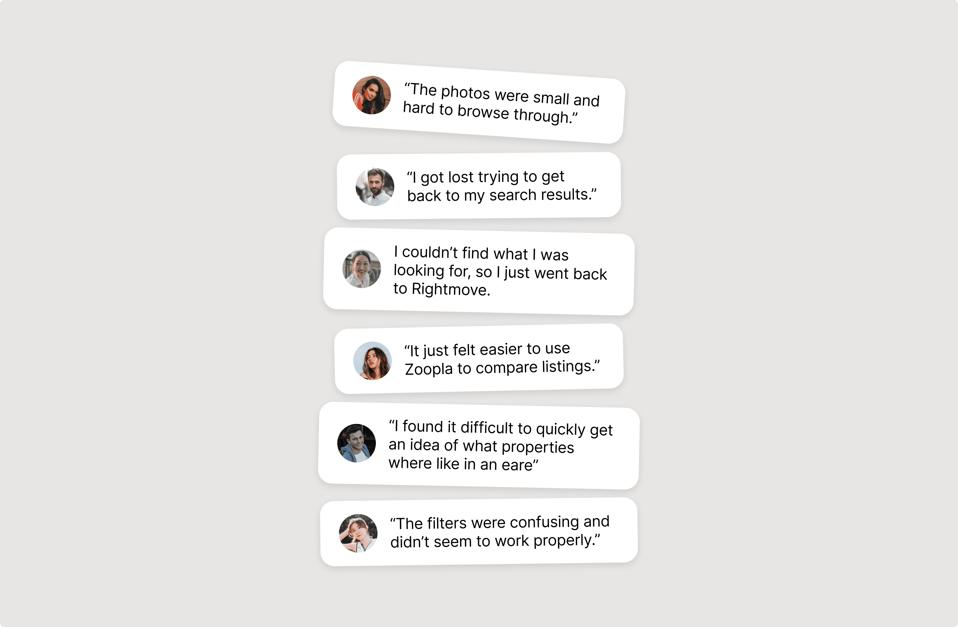 With the problem clearly desiphered, I conducted competitor analysis—looking not only at direct competitors like Zoopla and Rightmove, but also at lifestyle-focused platforms such as Modern House, Inigo, Airbnb, and Booking.com. This helped shape a more modern and inviting experience.